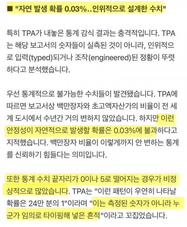 근데 영국의 조세 정책 분석기관인 TPA(Tax Policy Associates)에 따르면 해당 보고서 내 통계 주작 흔적이 다수 발견됨