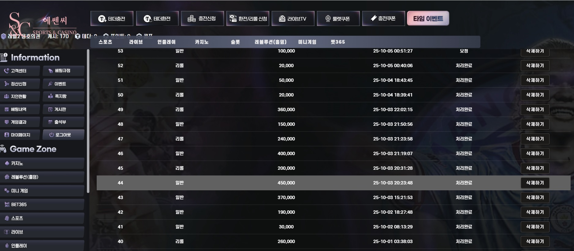 가입후 임플 매충 포인트 무제한으로 지급되구요 모든게임 100프로 롤링인게 너무 좋습니다 그리고 환전대기시 간도 없으며 환전 횟수도 마찬가지입니다 게임별로 매충 선택가능하며. 스포츠 하시는분들은 단철 가능 합니다 이벤트도 너무 많고 이사비지원, 타임이벤트 등등 넘쳐 납니다