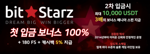 비트스타즈(BitStarz)는 2014년부터 운영된 암.호화.폐 카지노 플랫폼으로, 비.트코.인 및 다양한 디지털 자.산을 지.원하는 글로벌 온라인 슬롯 사이트입니다.