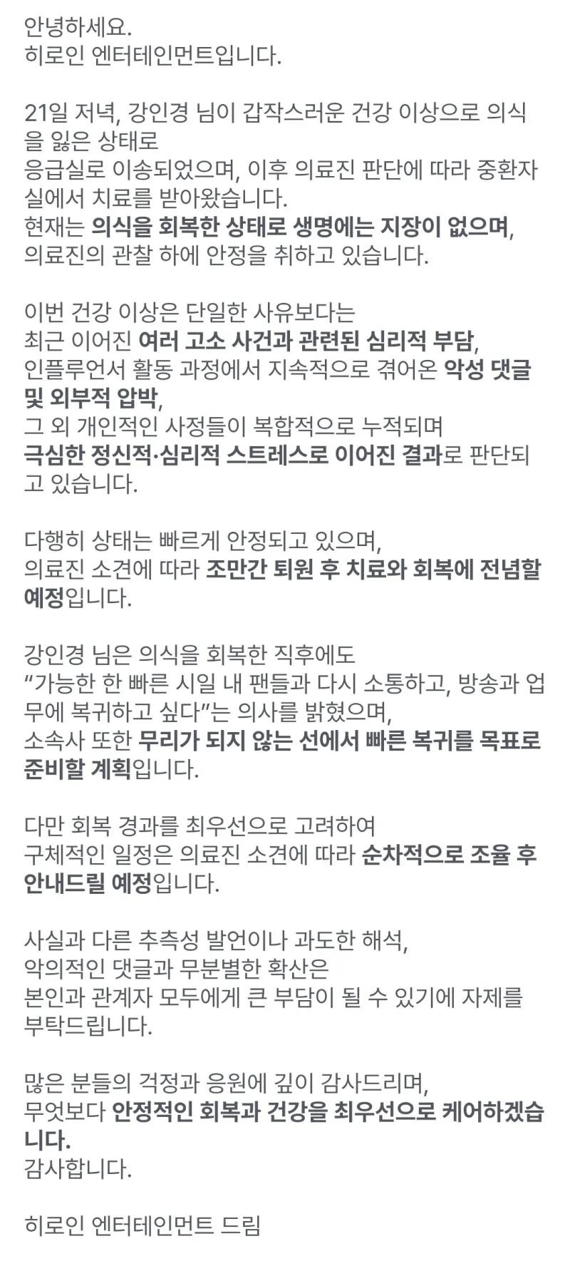 강인경 누나 아픈가봄