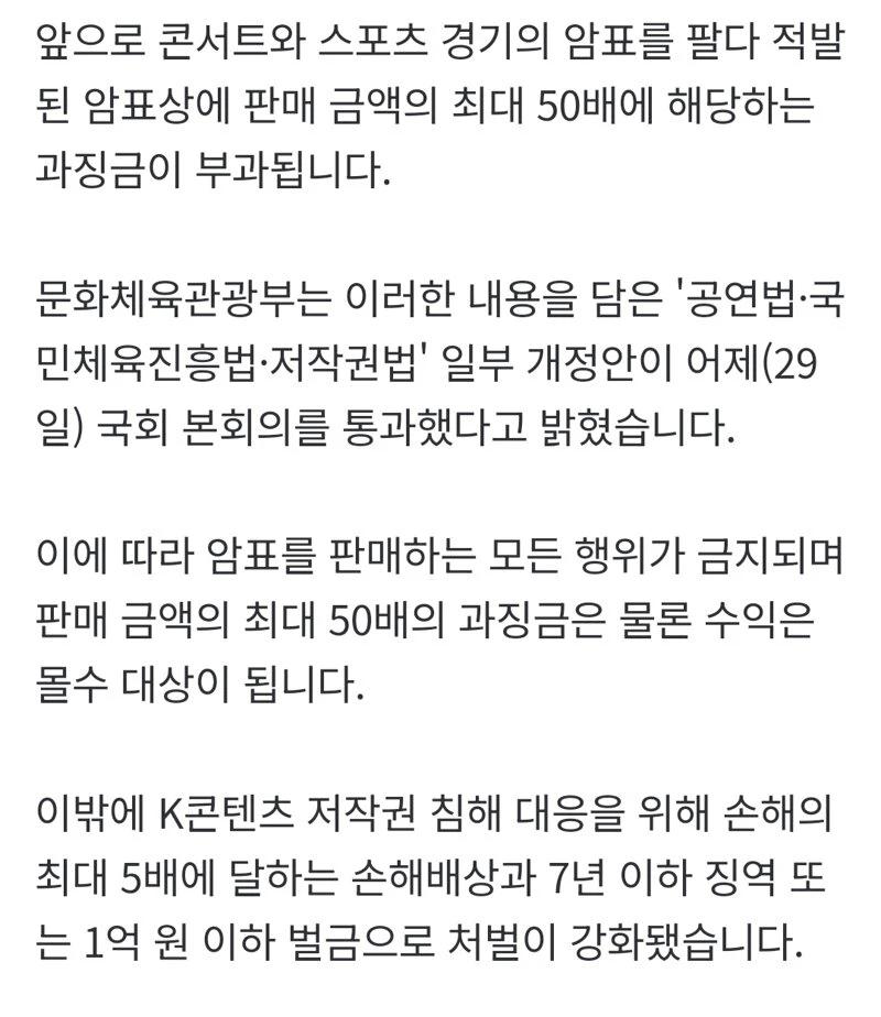 ex) 10만원짜리 표 100만원에 팔다가 걸리면 5,000만원 뱉어야함
